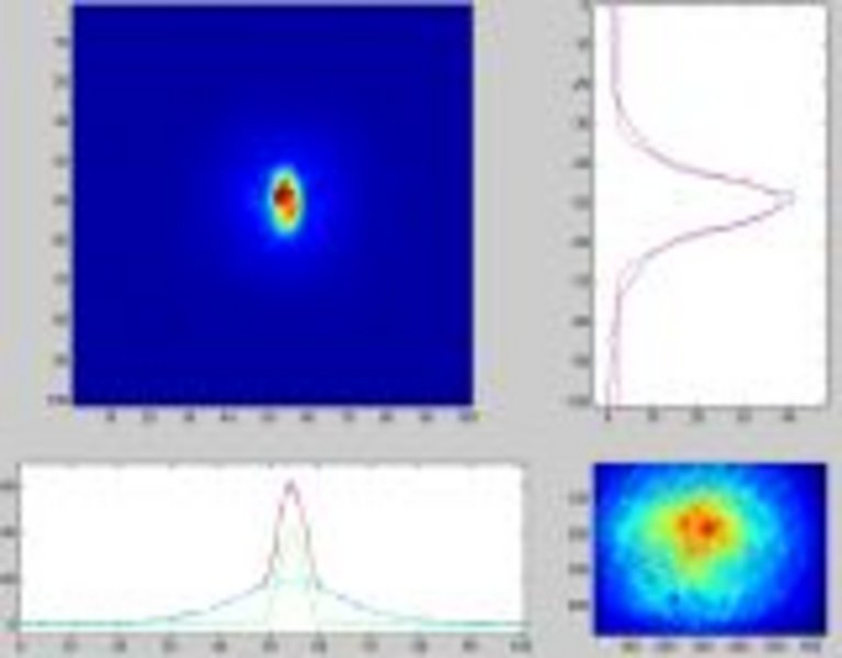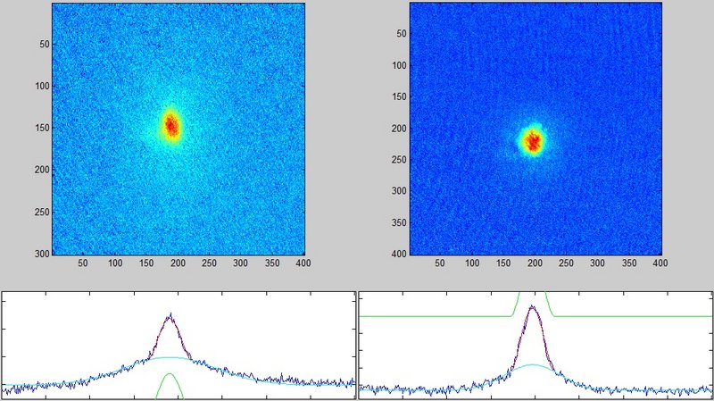 The first BEC in the MIX laboratory was realized on the 15.2.2012! The magnification of the imaging system is only set to 1 at the moment, and so far it is not focussed very well. Nonetheless the low expansion of the cloud provides clear evidence for BEC. It took us roughly 5 months to make a BEC after moving the apparatus from Hannover to Århus. The number of atoms and the temperature seems to be the same as in our previous work! Now we can start to optimise! (02/2012)