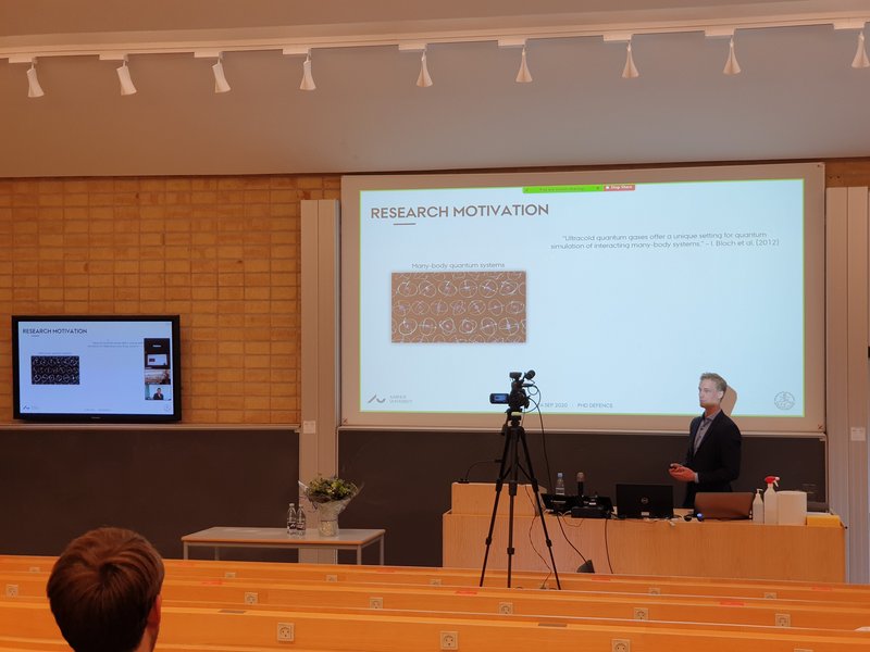 In March, Toke successfully defended his PhD titled "Statistical analysis of atom number fluctuations in quantum degenerate Bose gases".