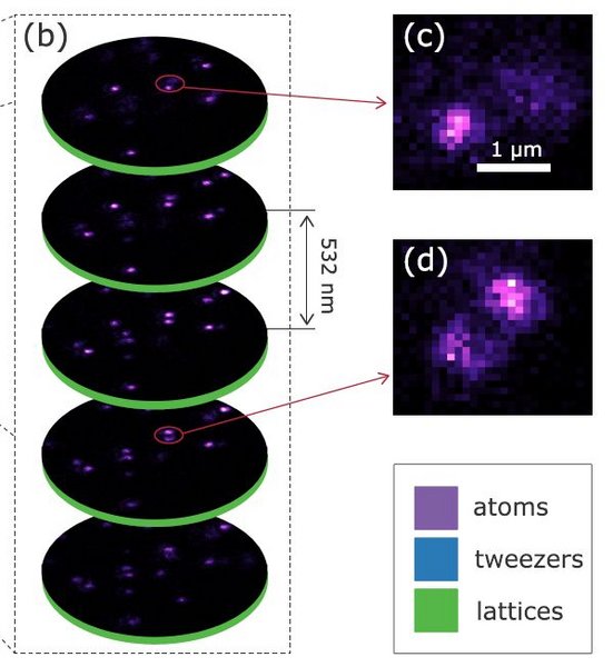 In our most recent paper we show a method to determine the position of single atoms in a three-dimensional optical lattice. Typically atoms are sparsely loaded from into a few vertical planes of a cubic optical lattice positioned near a high-resolution microscope objective. In a single realization of the experiment, we pin the atoms in deep lattices and then acquire multiple fluorescence images with single-site resolution. The objective is translated between images, bringing different lattice planes of the lattice into focus. This opens up the possibility of extending the domain of quantum simulation using quantum gas microscopes from two to three dimensions.