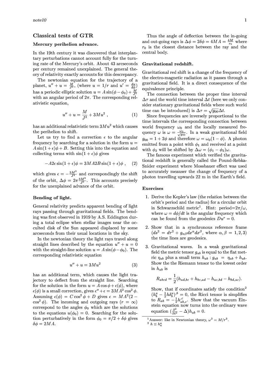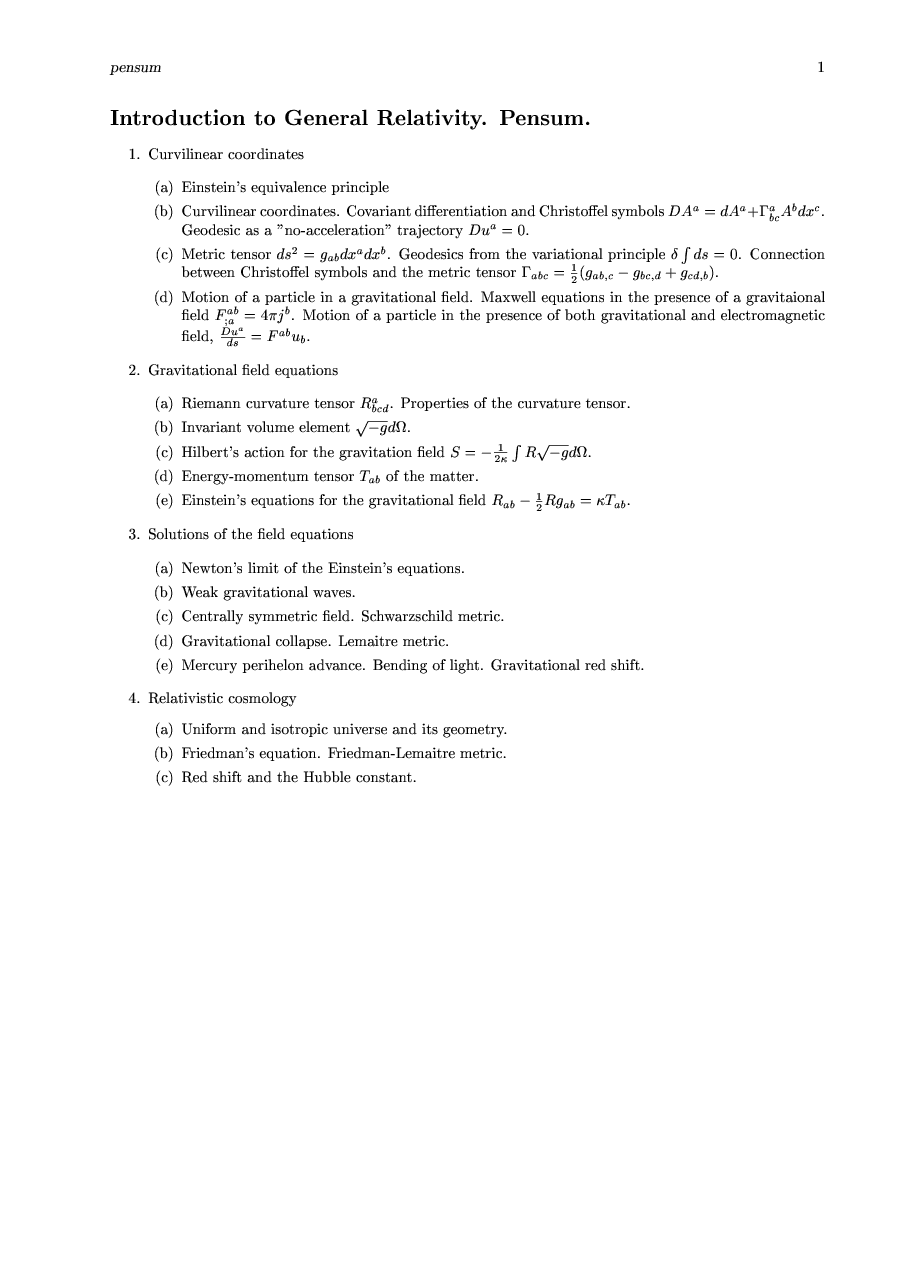 Introduction to General Theory of Relativity. First quarter 2007.
