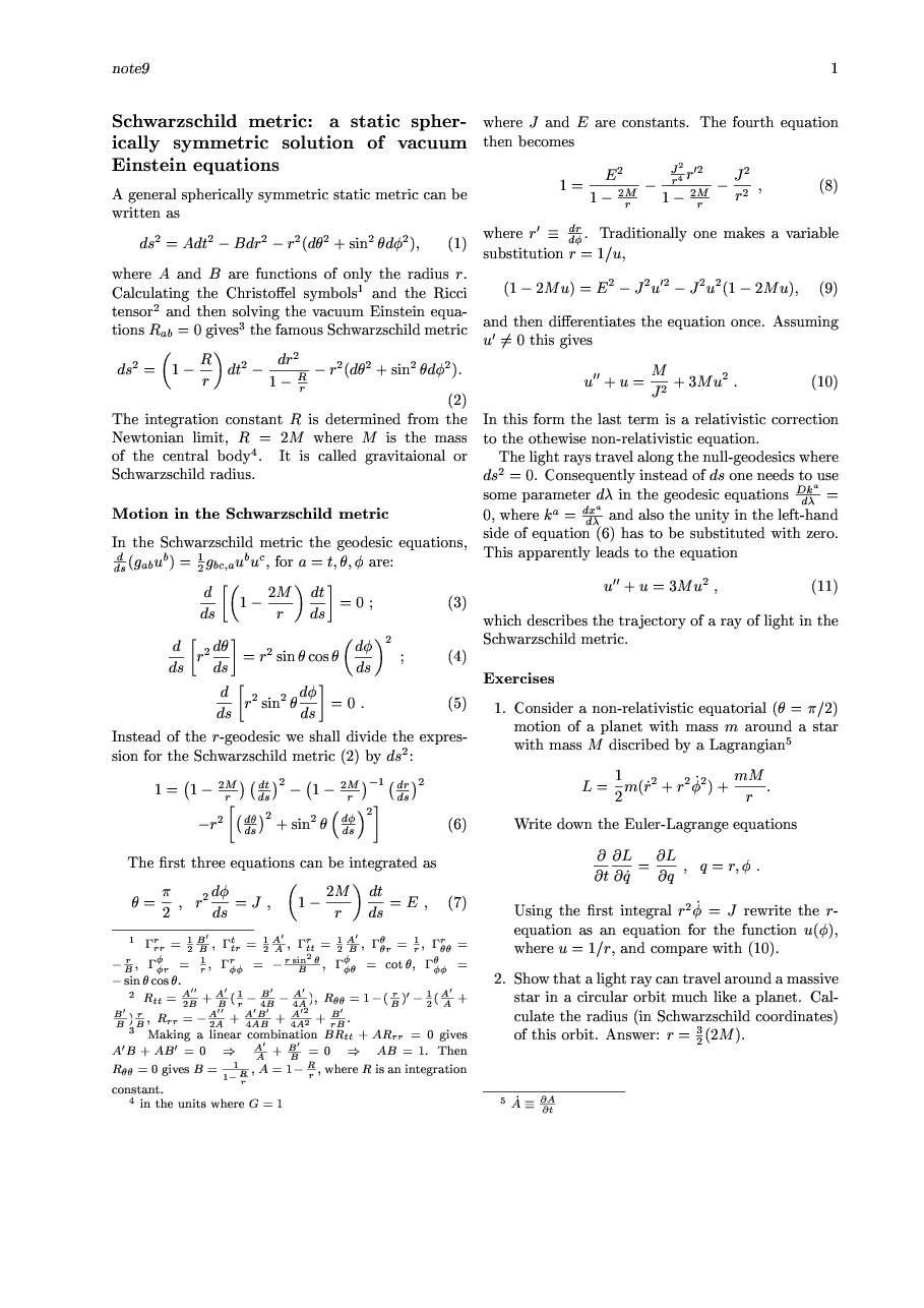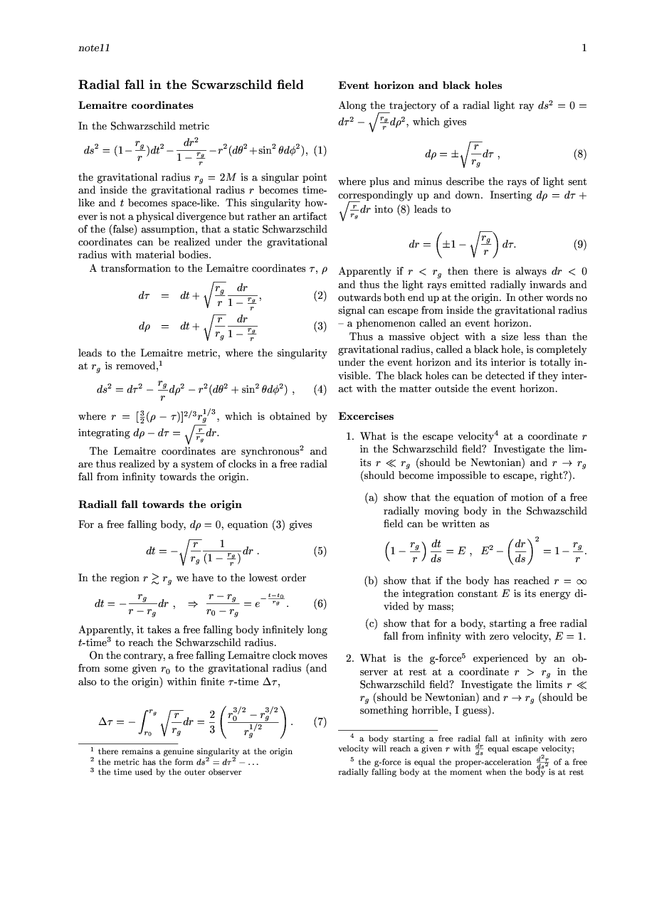 Motion in the Schwarzschild metric.