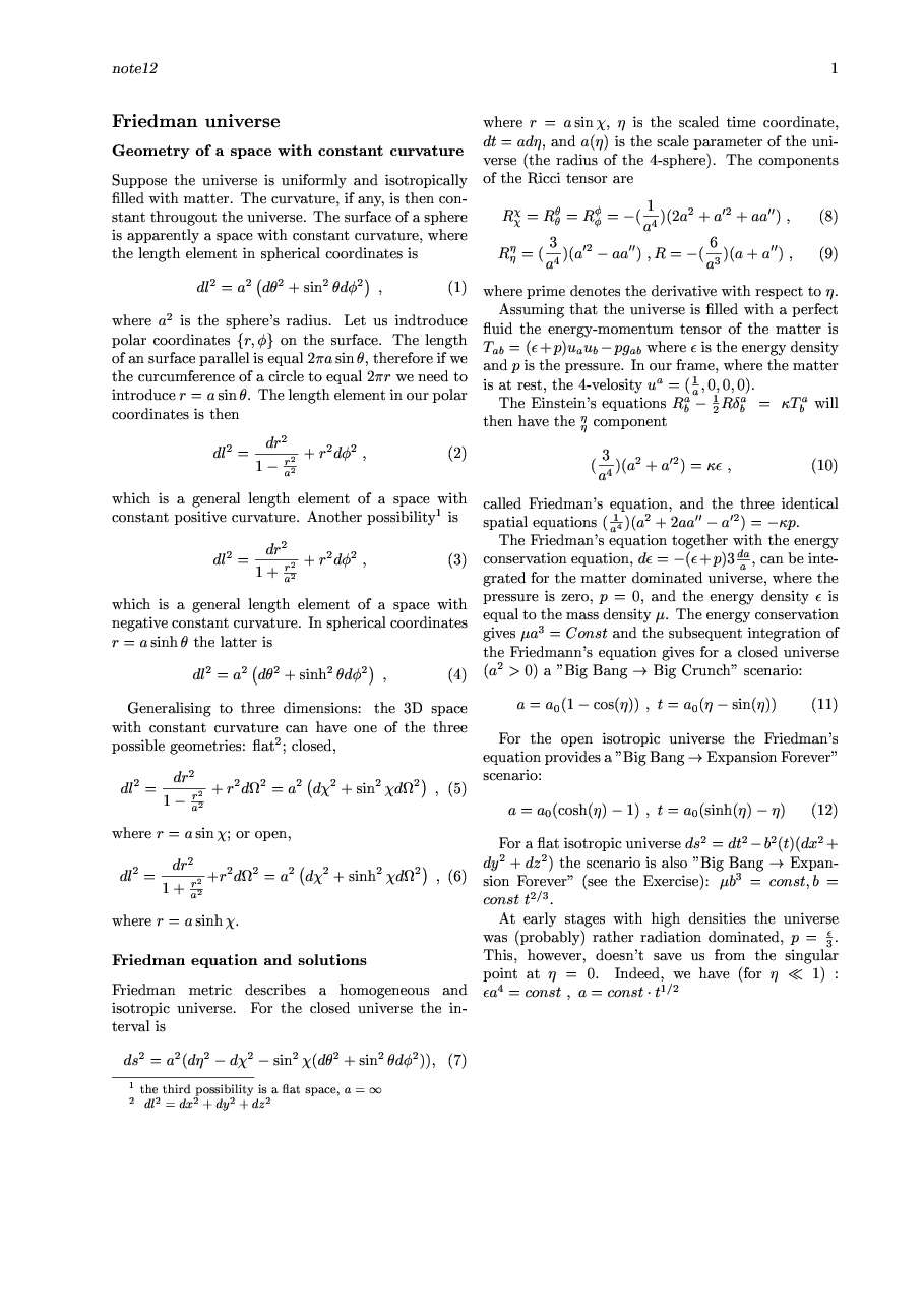 Homogeneous and isotropic universe. Fri