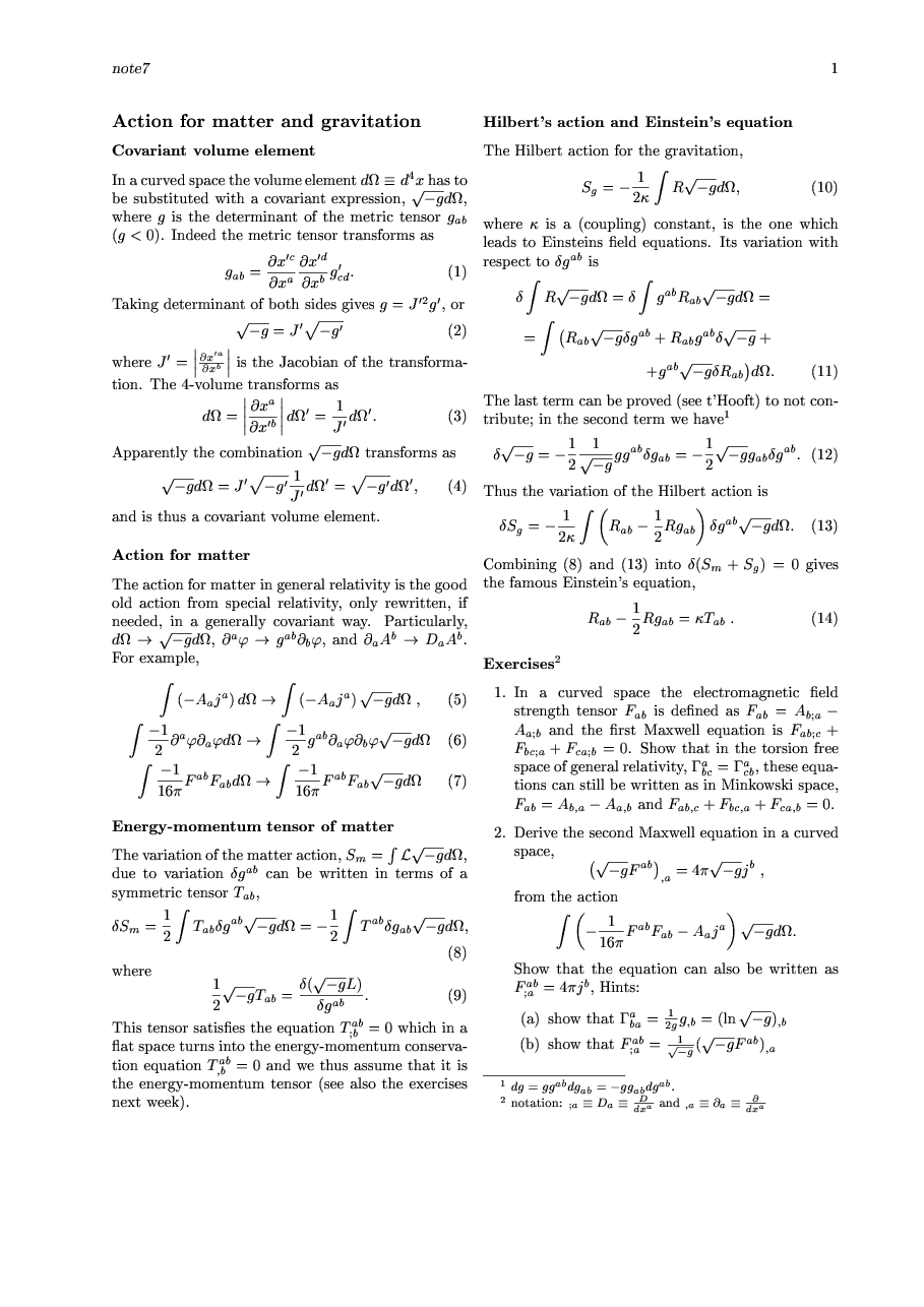 Action of matter in a curved space. Hilbert action for gravitation.