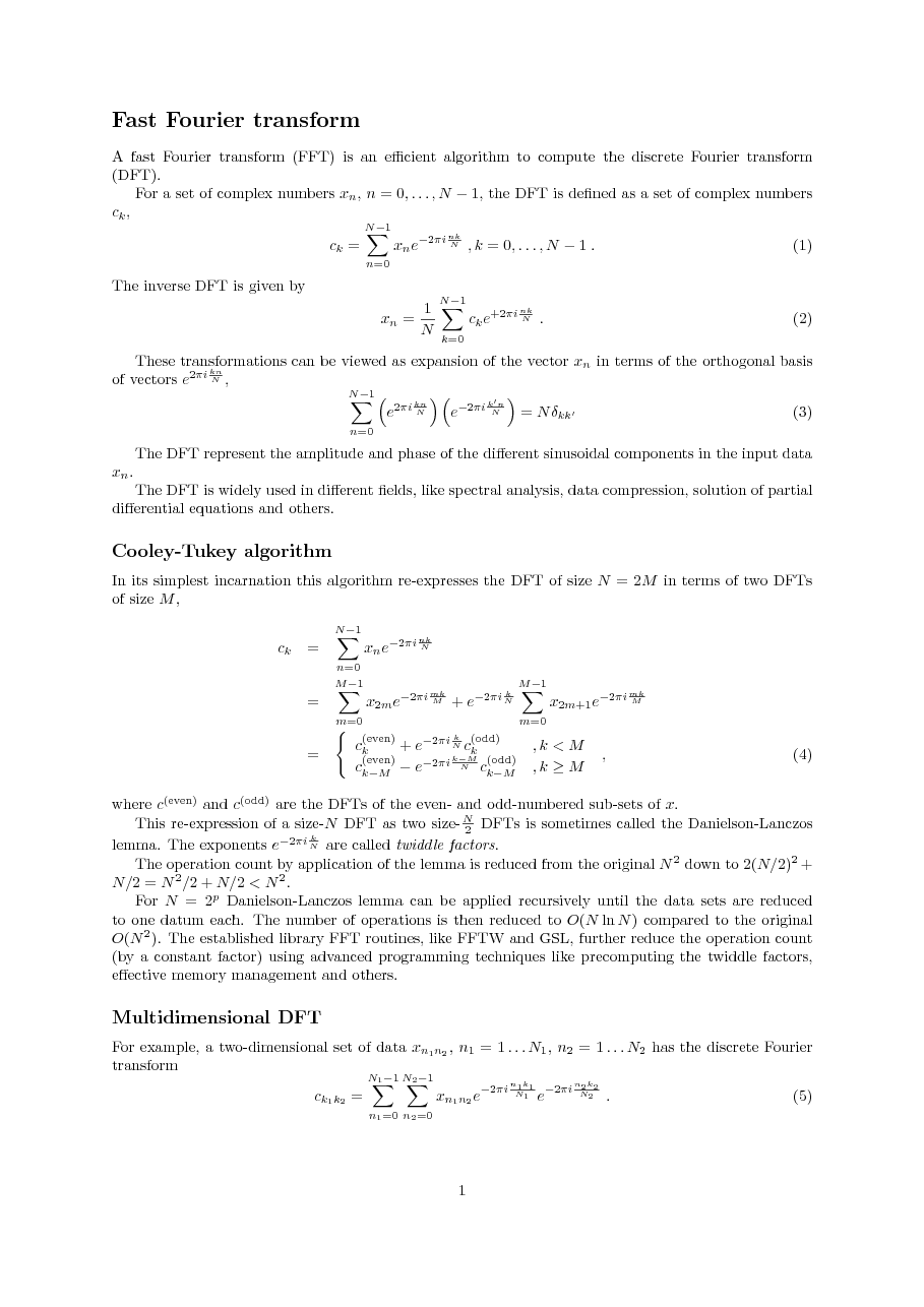- Fast Fourier transform and applications: (examples in C and