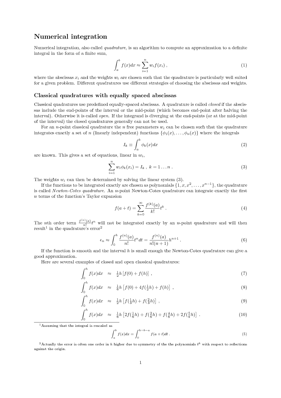 - Numerical integration (quadratures)