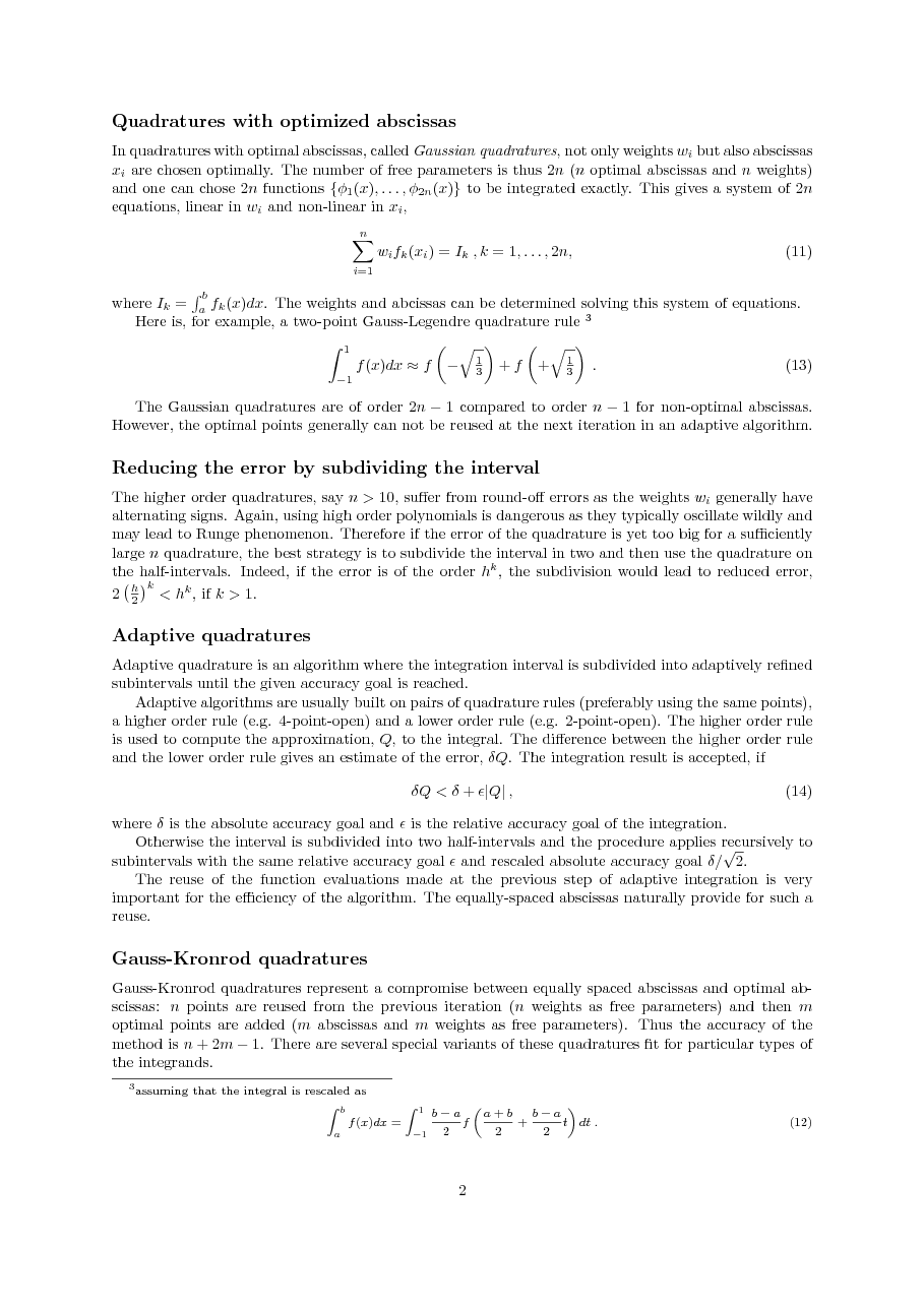 quadratures with optimized abscissas (Gauss);
