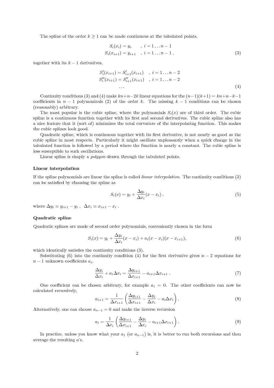 Polynomial interpolation; spline interpolation: linear, quadratic, cubic;