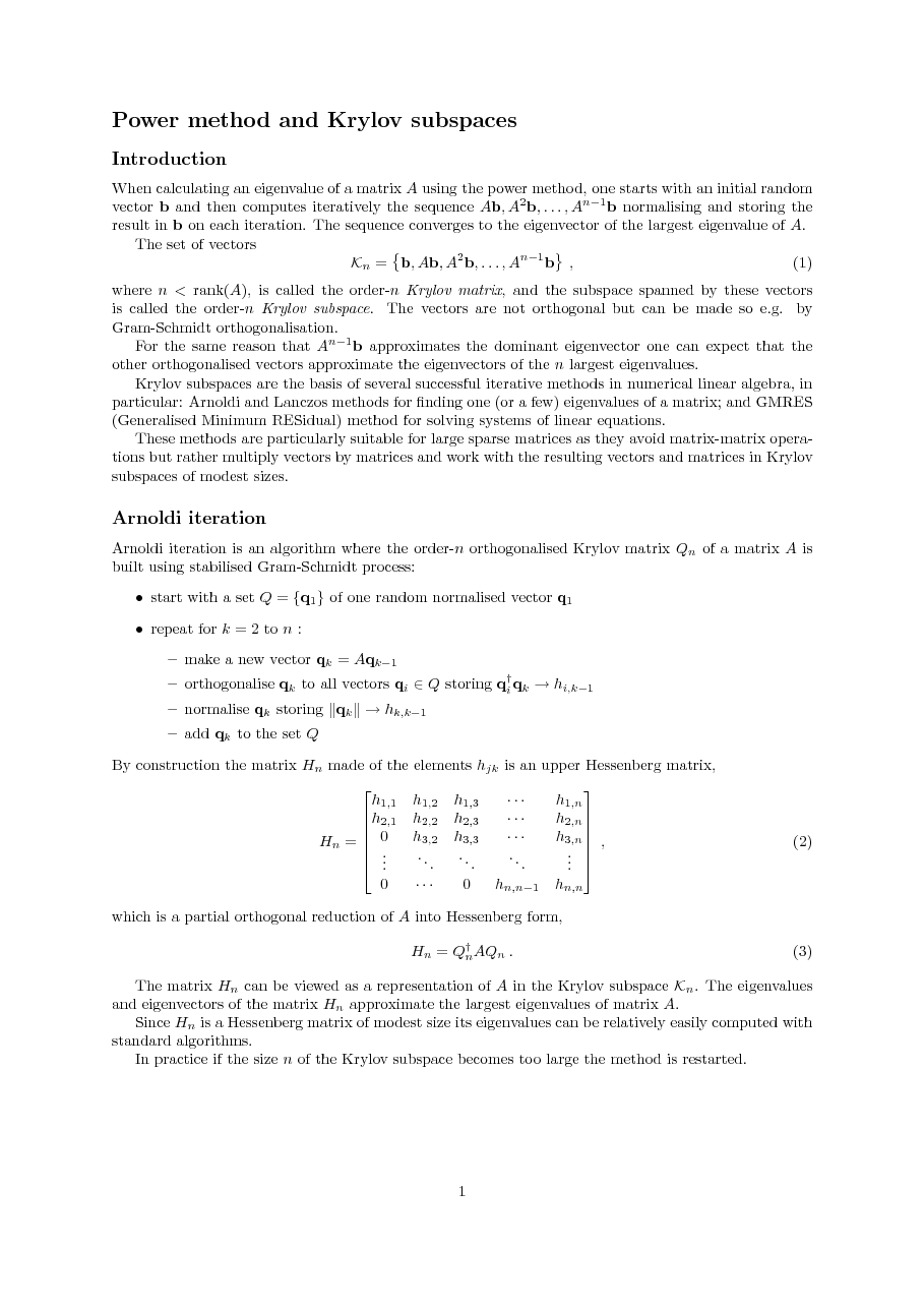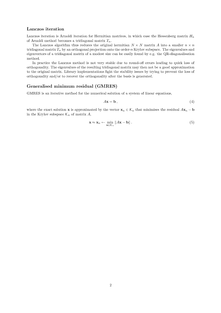 - Krylov subspace methods: