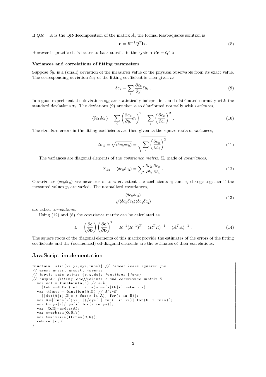 Least-squares solution with QR-method; ordinary least-squares fit;