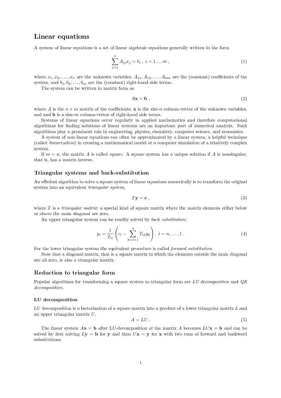 - Systems of linear equations