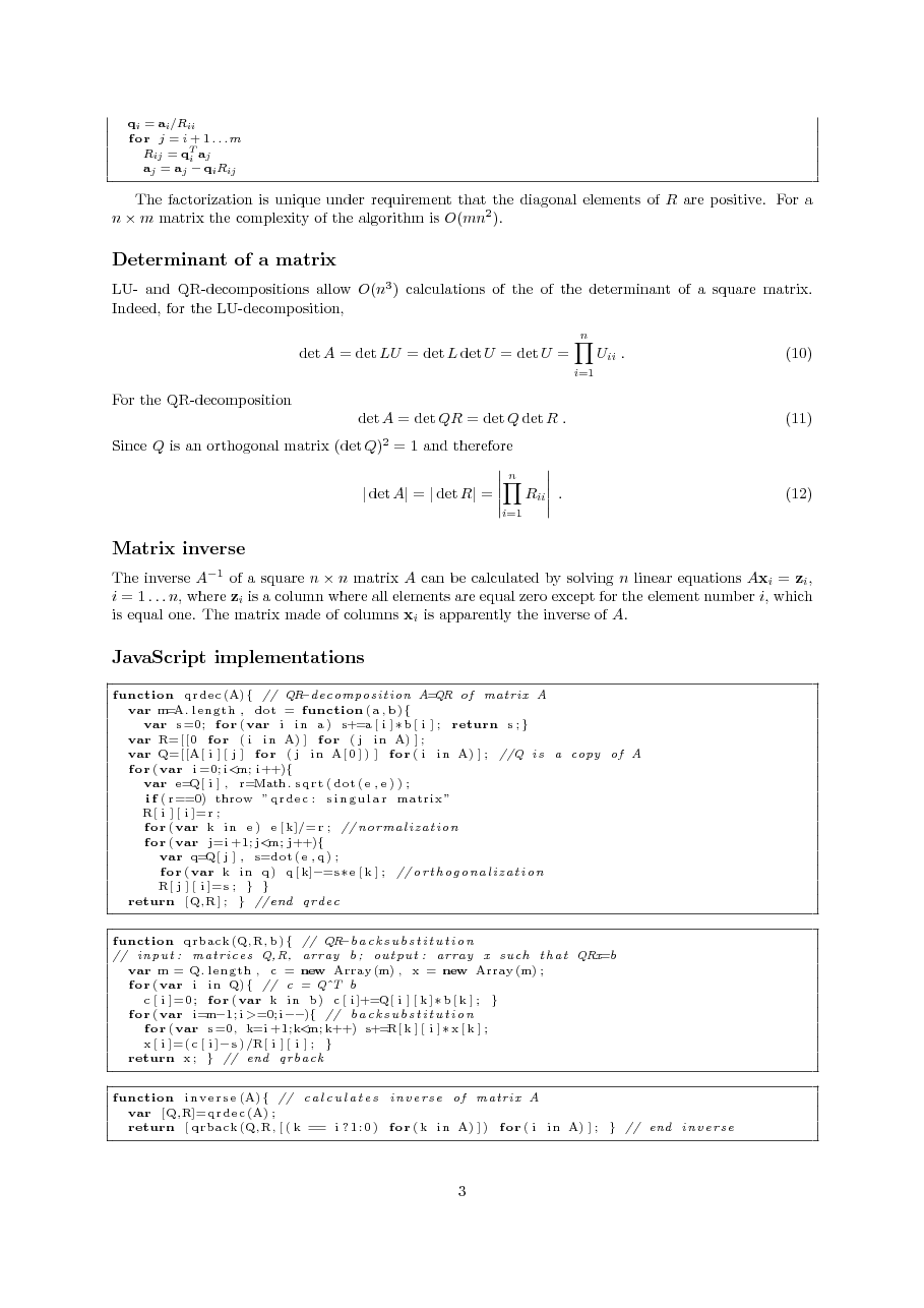 algorithm; QR-decomposition: modified Gram-Shmidt algorithm; determinant of