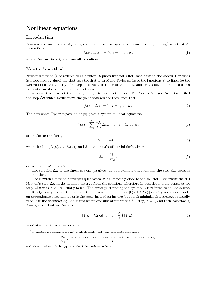 - Nonlinear equations and optimization